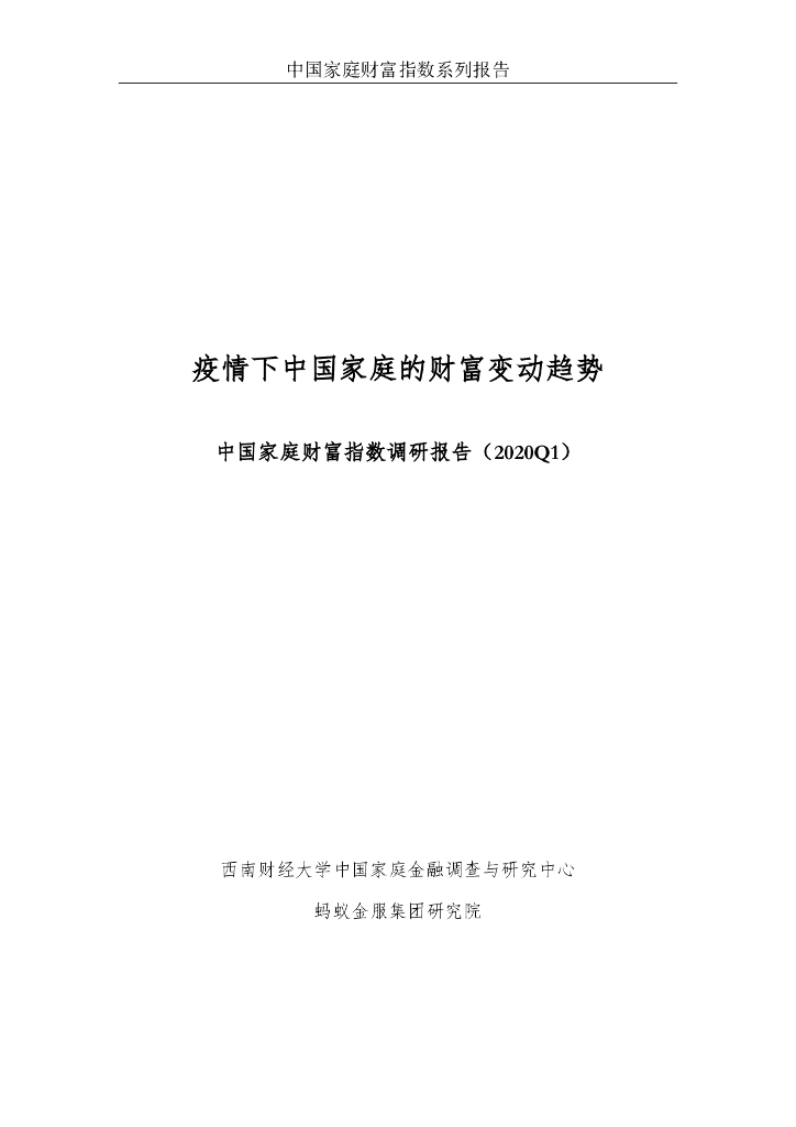 西南财经大学&蚂蚁金服:疫情下中国家庭的财富变动趋势—中国家庭财富指数调研报告(2020Q1).pdf