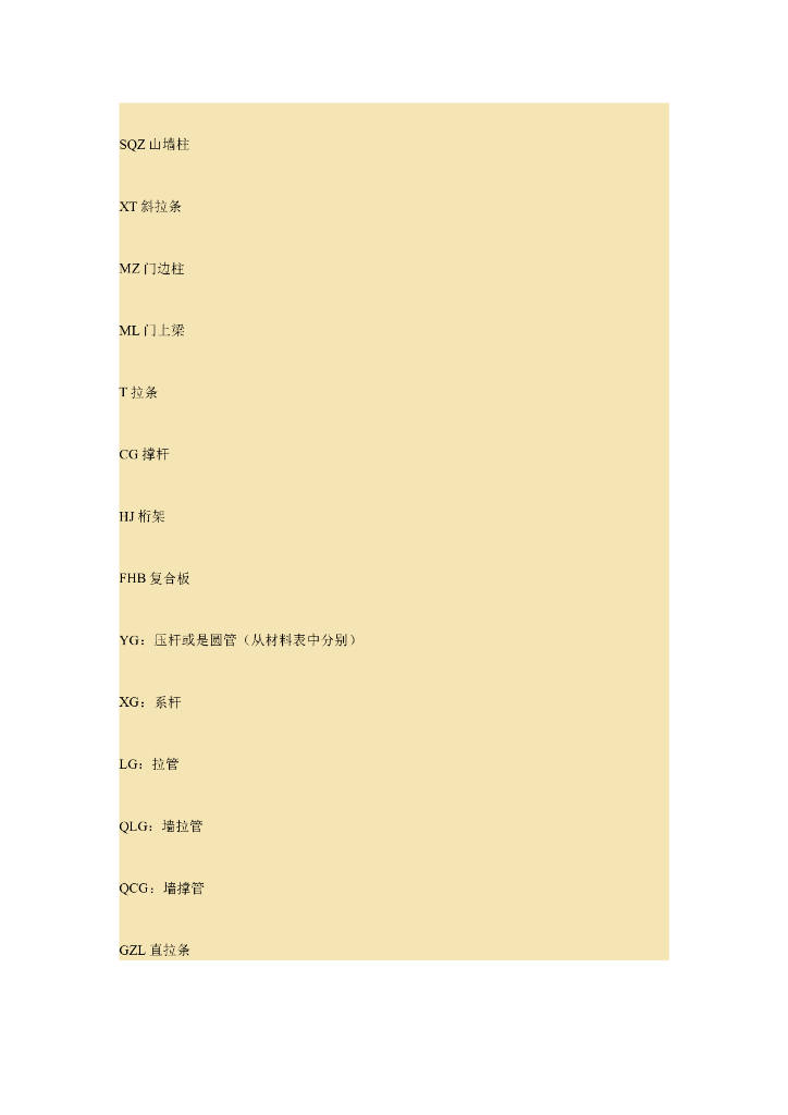 钢结构中GJ\GL\GZ\XG\SC\YC\ZC\LT\GZL\GXL\CG代表含义.doc