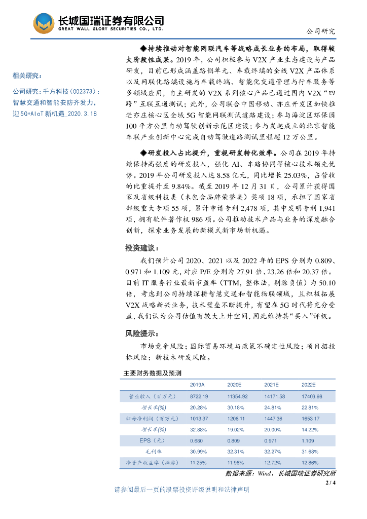 长城国瑞证券:千方科技(002373)-业绩保持良好增长,销售回款大幅上升.pdf
