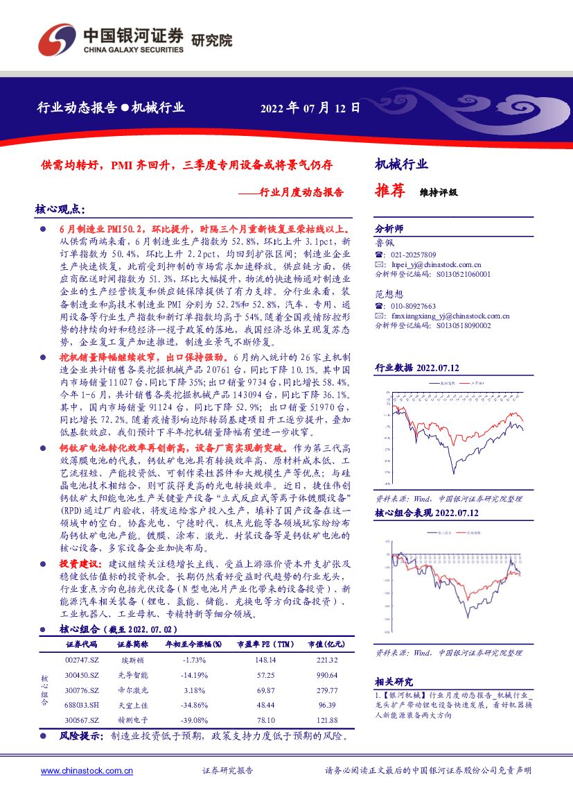 中国银河:机械行业月度动态报告:供需均转好,PMI齐回升,三季度专用设备或将景气仍存.pdf