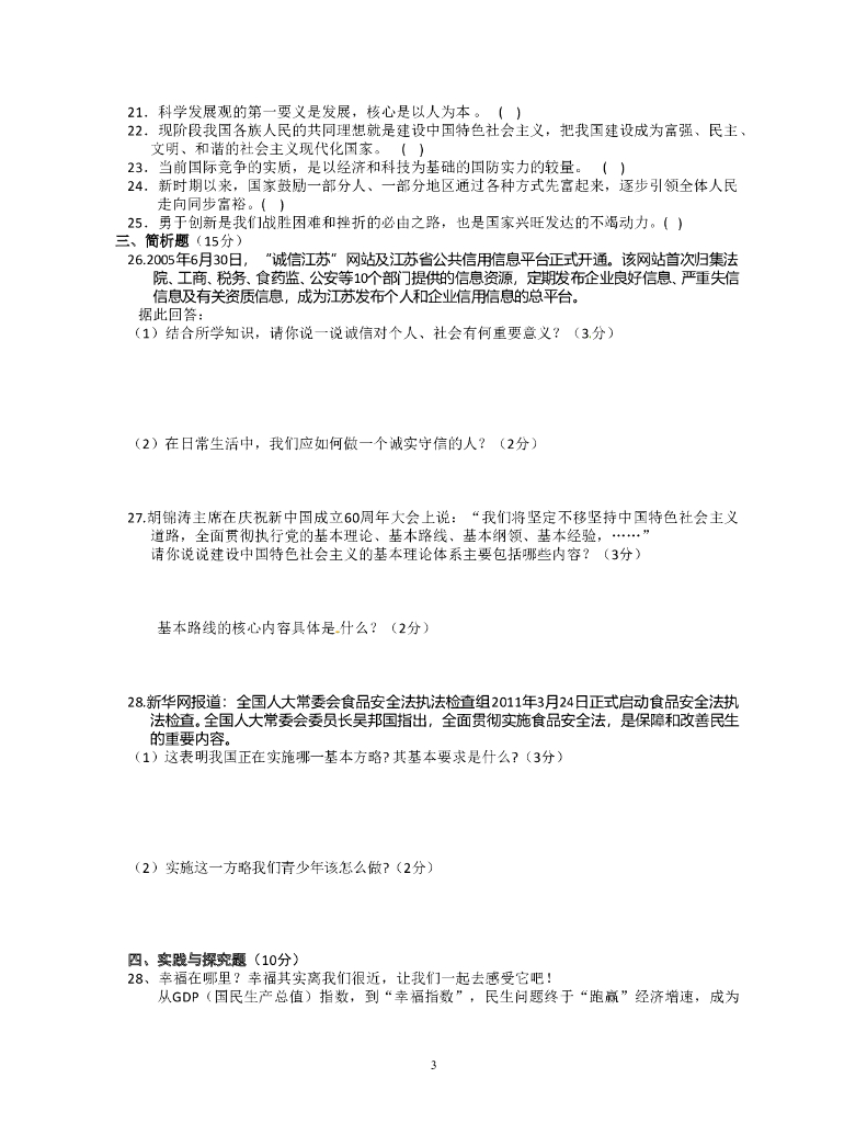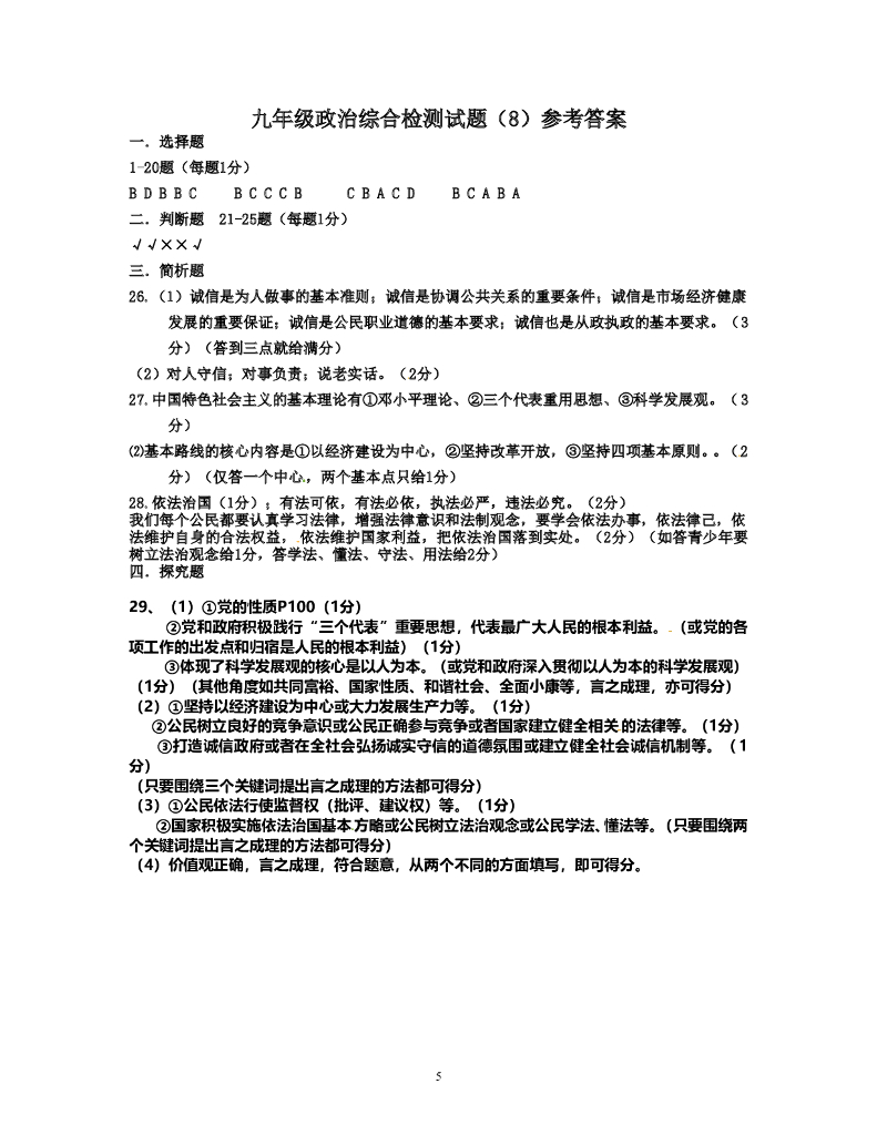 九年级政治综合检测试题(8 ) .doc