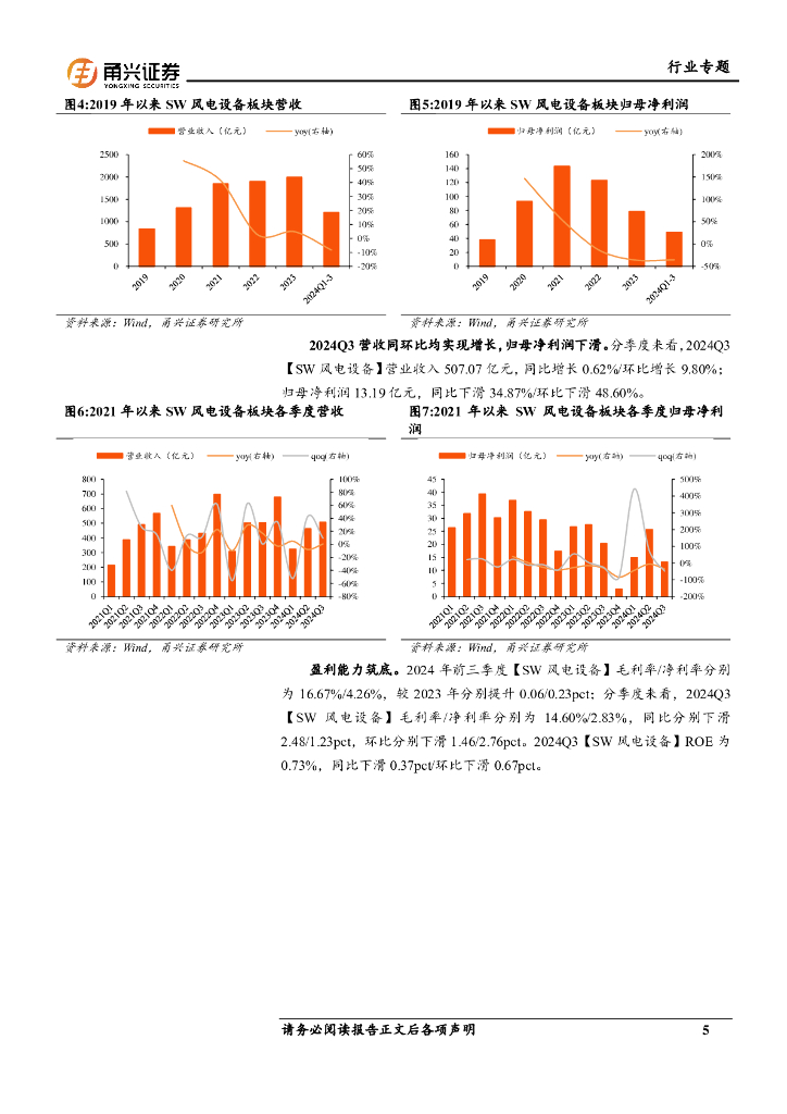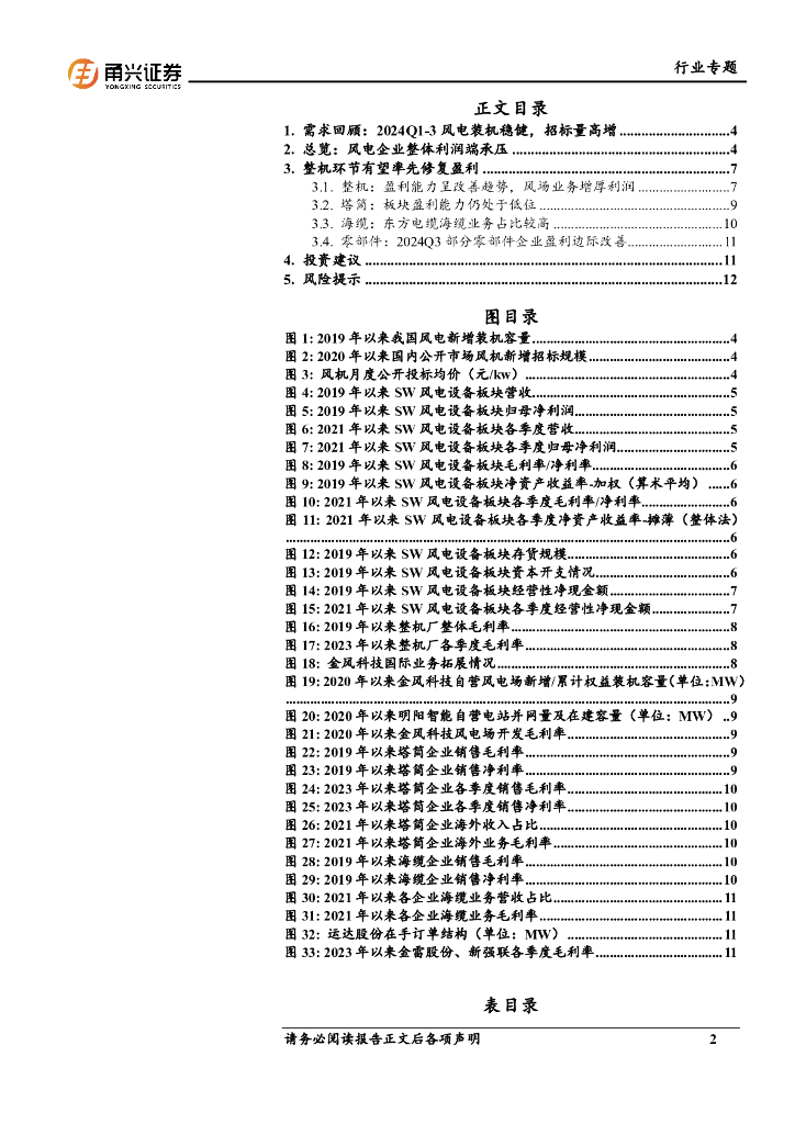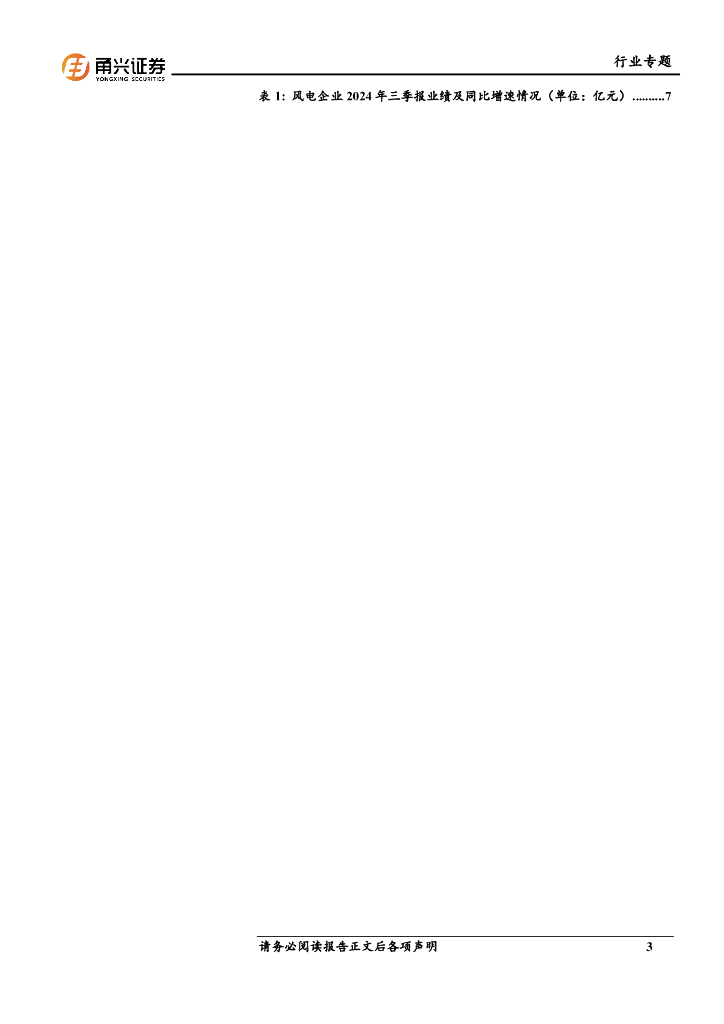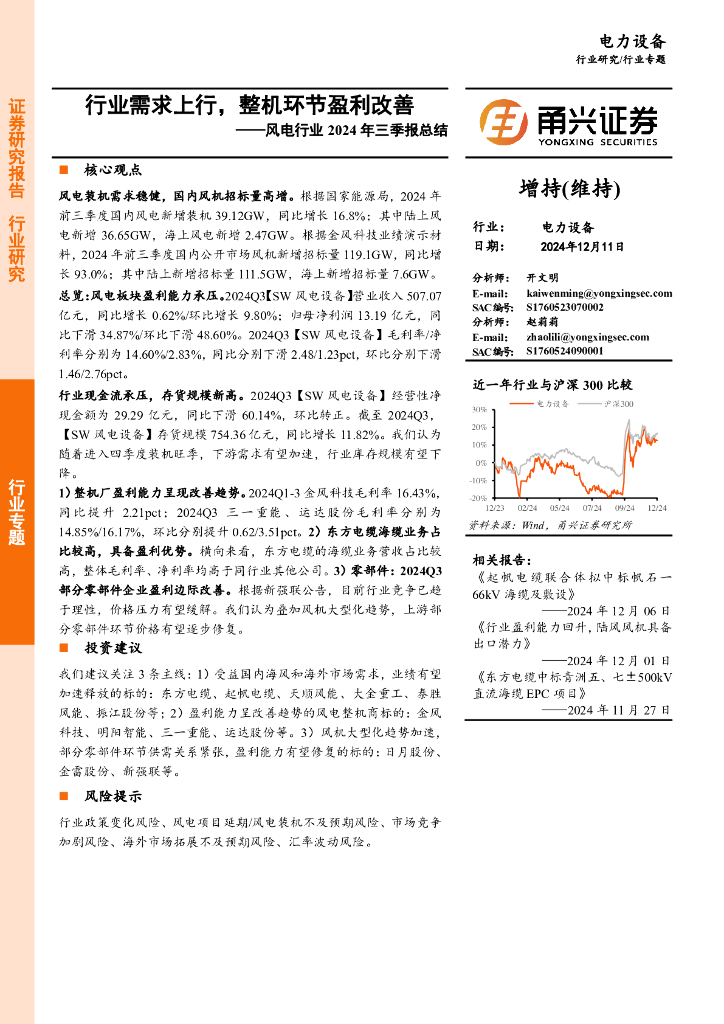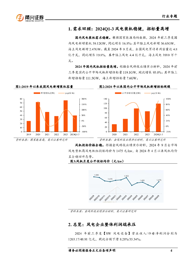 甬兴证券:风电行业2024年三季报总结:行业需求上行,整机环节盈利改善.pdf