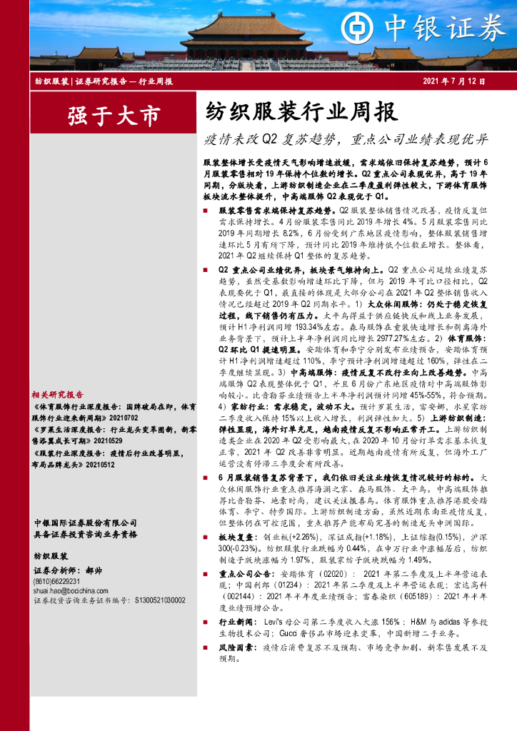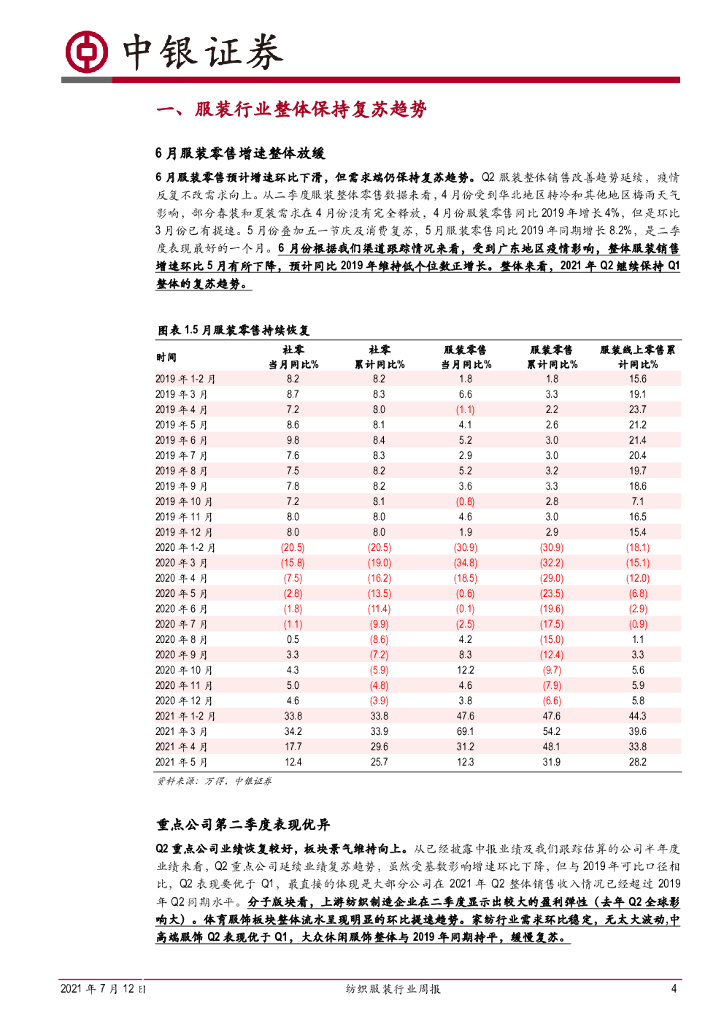 中银证券:纺织服装行业周报:疫情未改Q2复苏趋势,重点公司业绩表现优异.pdf