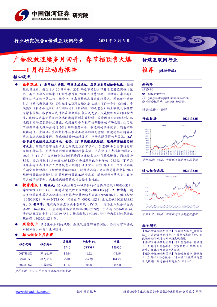 中国银河:传媒互联网行业1月行业动态报告:广告投放连续多月回升,春节档预售火爆.pdf