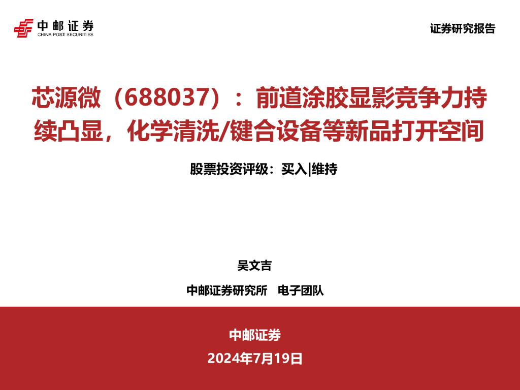 中邮证券:芯源微(688037)-前道涂胶显影竞争力持续凸显,化学清洗/键合设备等新品打开空间.pdf