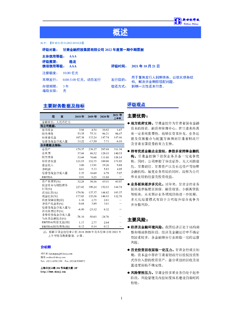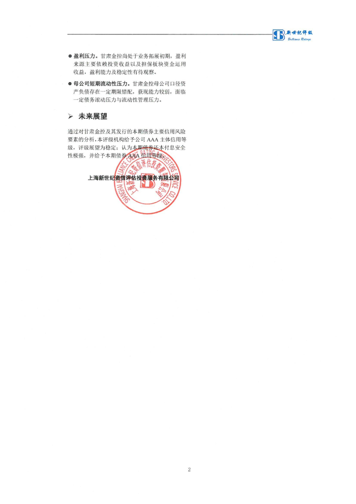 新世纪:甘肃金融控股集团有限公司2022年度第一期中期票据信用评级报告及跟踪评级安排.pdf