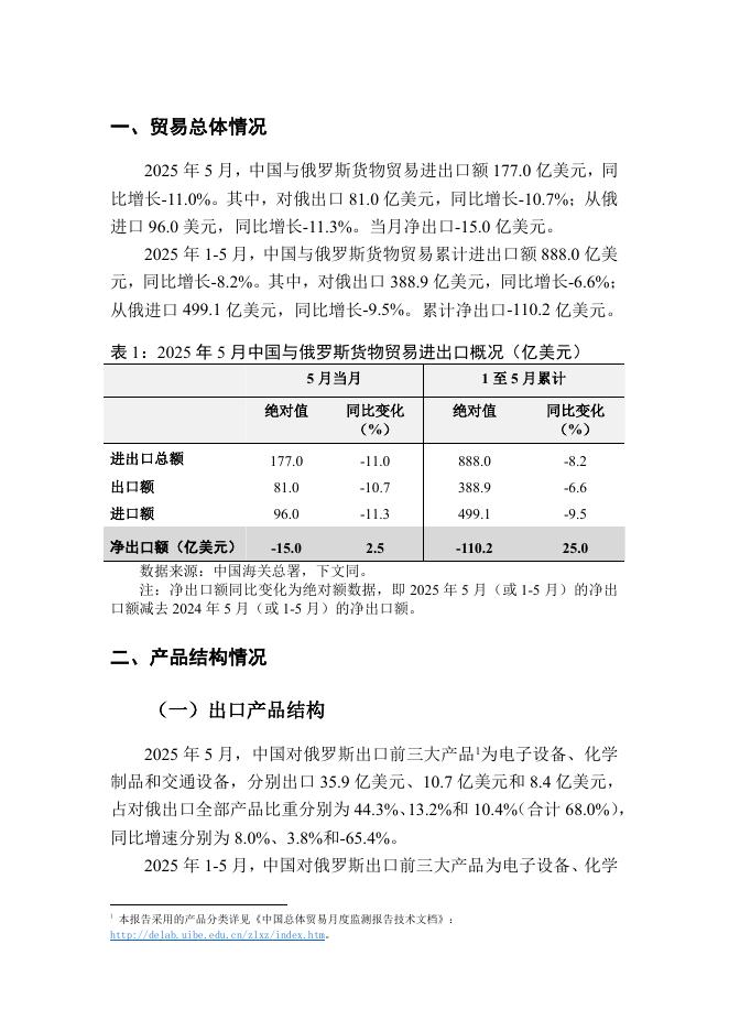 对外经济贸易大学:中俄总体贸易月度监测报告(2025年1-5月).pdf