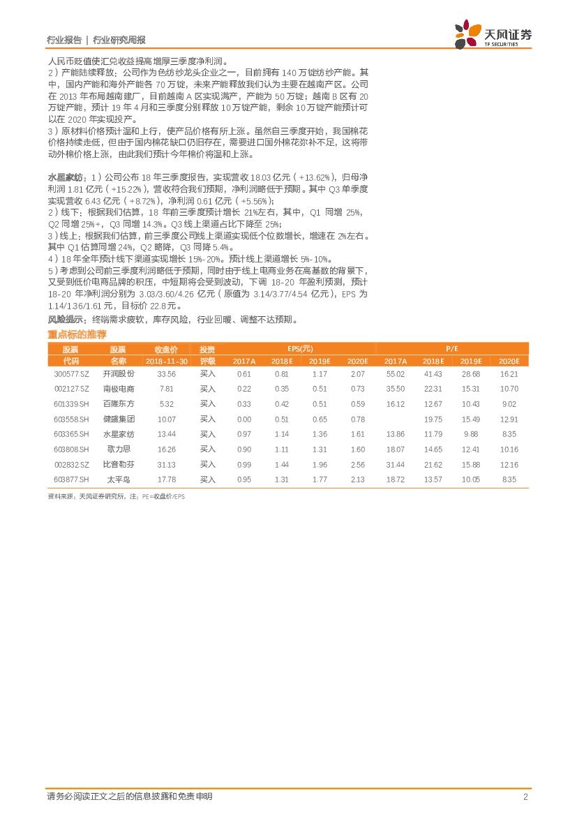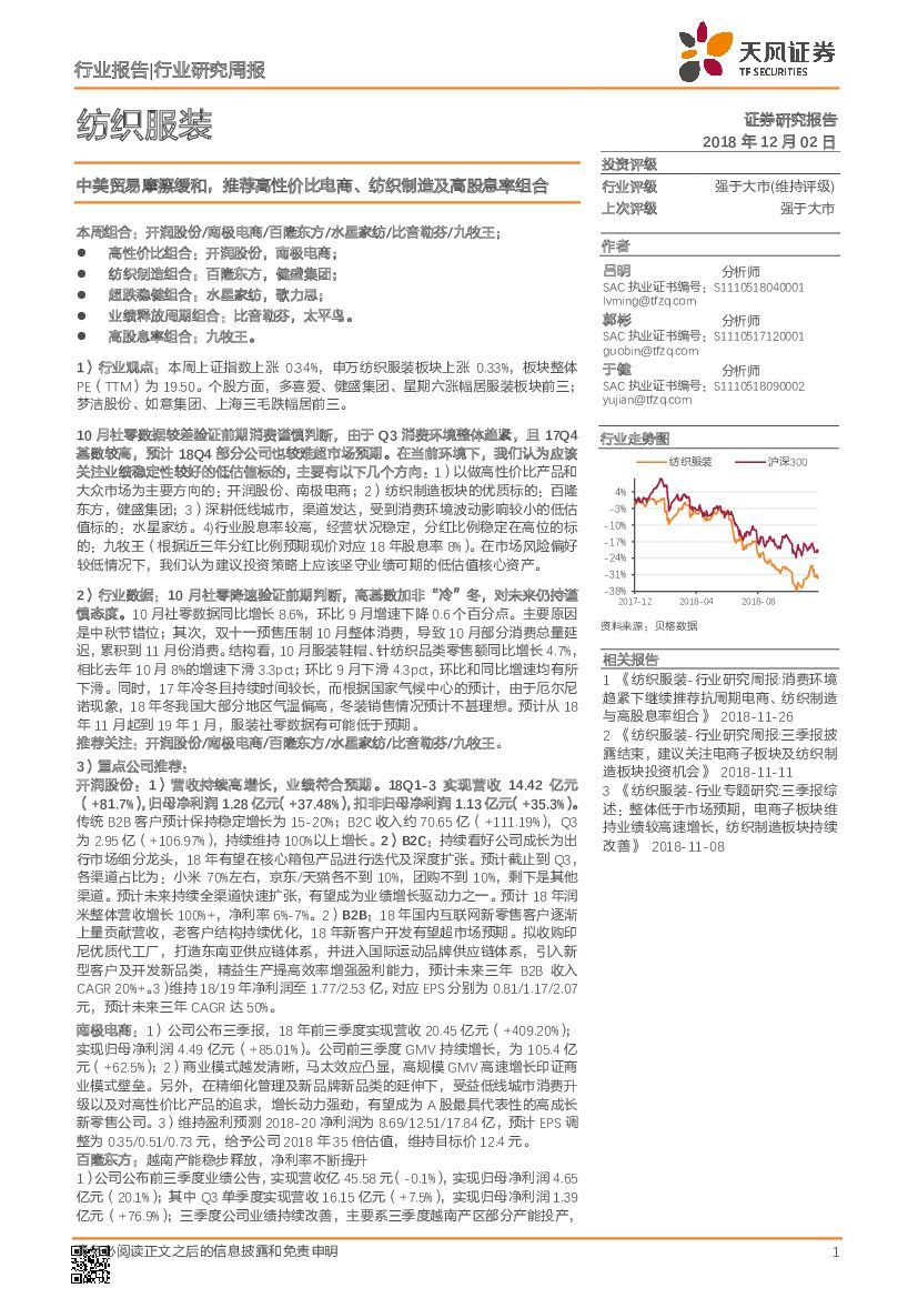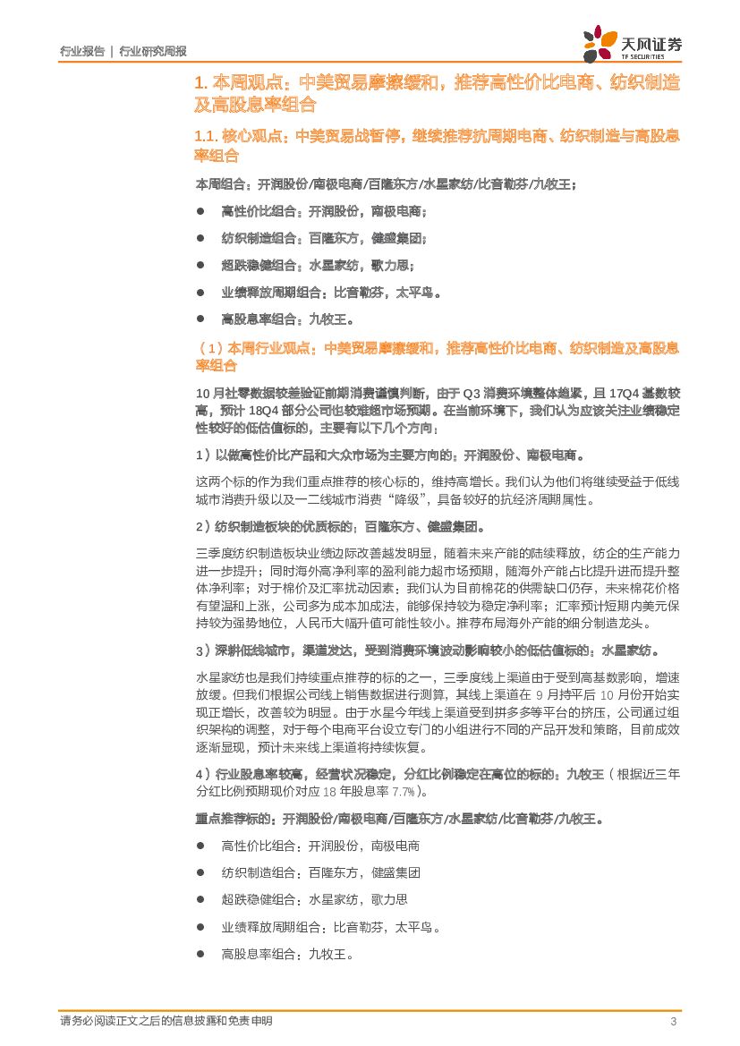 天风证券:纺织服装行业研究周报:中美贸易摩擦缓和,推荐高性价比电商、纺织制造及高股息率组合.pdf