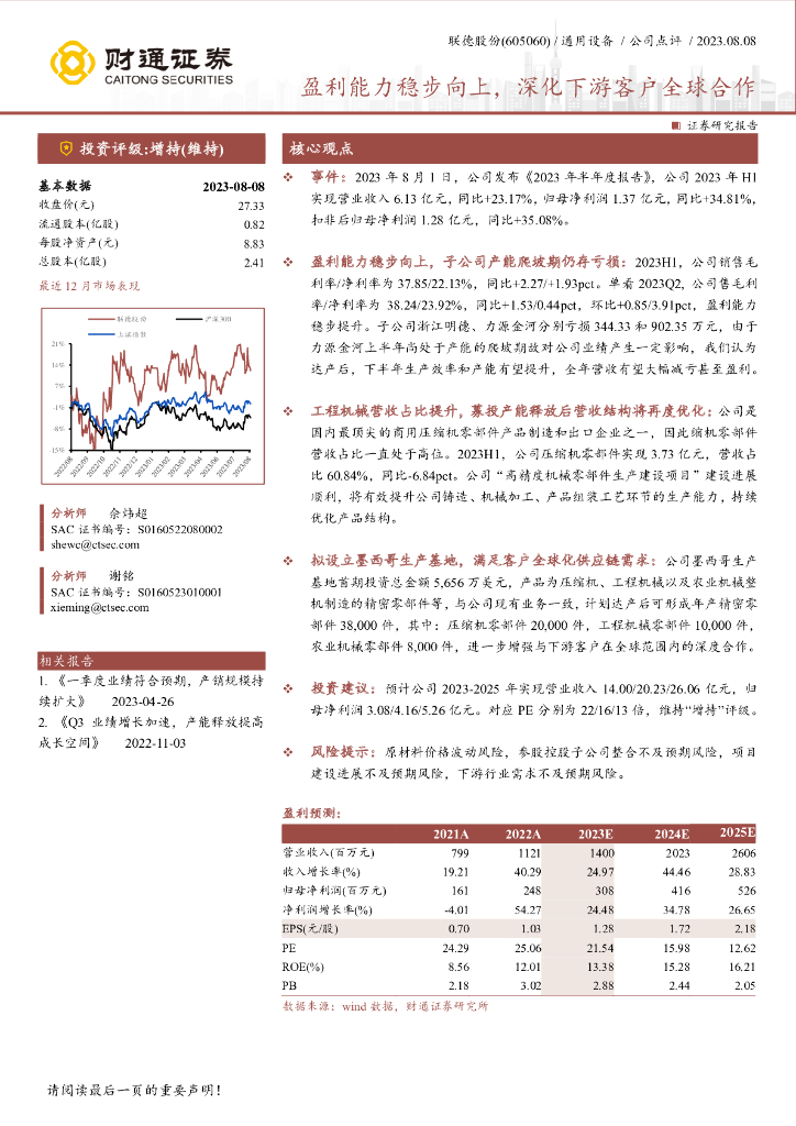 财通证券:联德股份(605060)-盈利能力稳步向上,深化下游客户全球合作.pdf