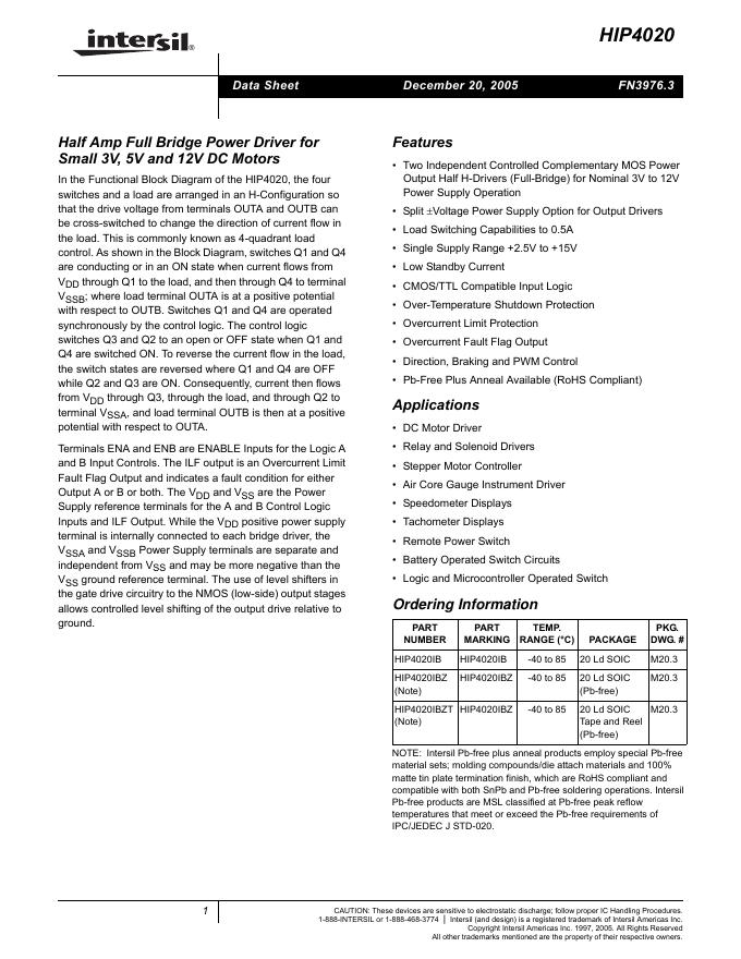 INTERSIL HIP4020 数据手册.pdf