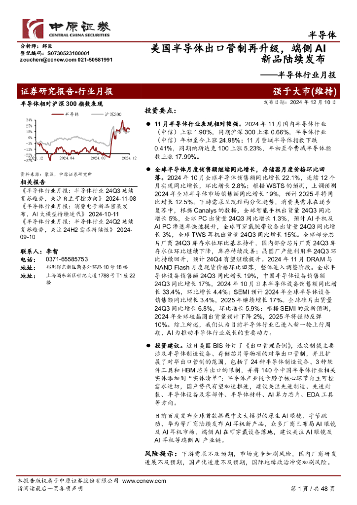 中原证券:半导体行业月报:美国半导体出口管制再升级,端侧AI新品陆续发布.pdf