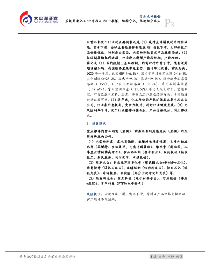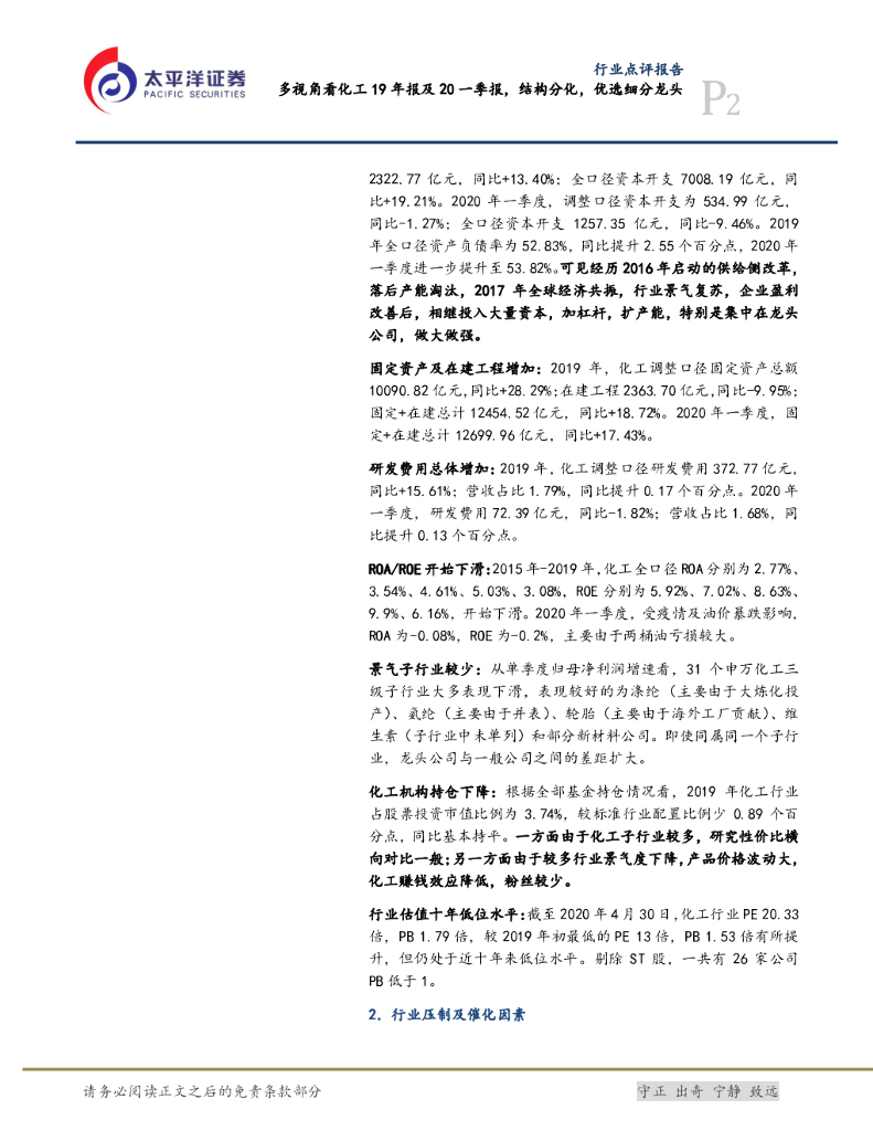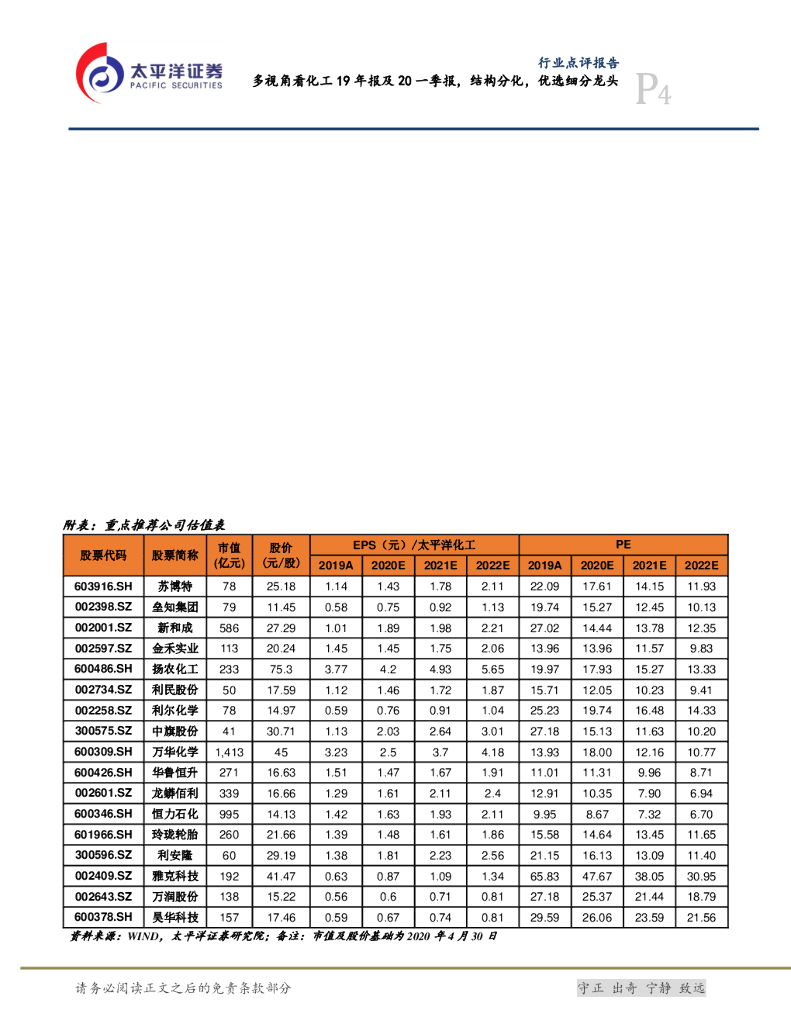 太平洋证券:化工行业:多视角看化工19年报及20一季报,结构分化,优选细分龙头.pdf