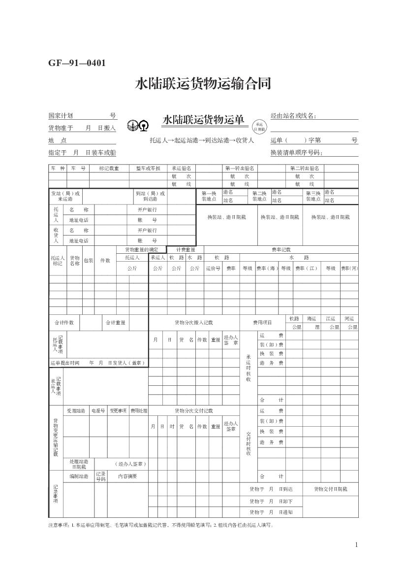 GF-91-0401 水陆联运货物运输合同(示范文本).pdf