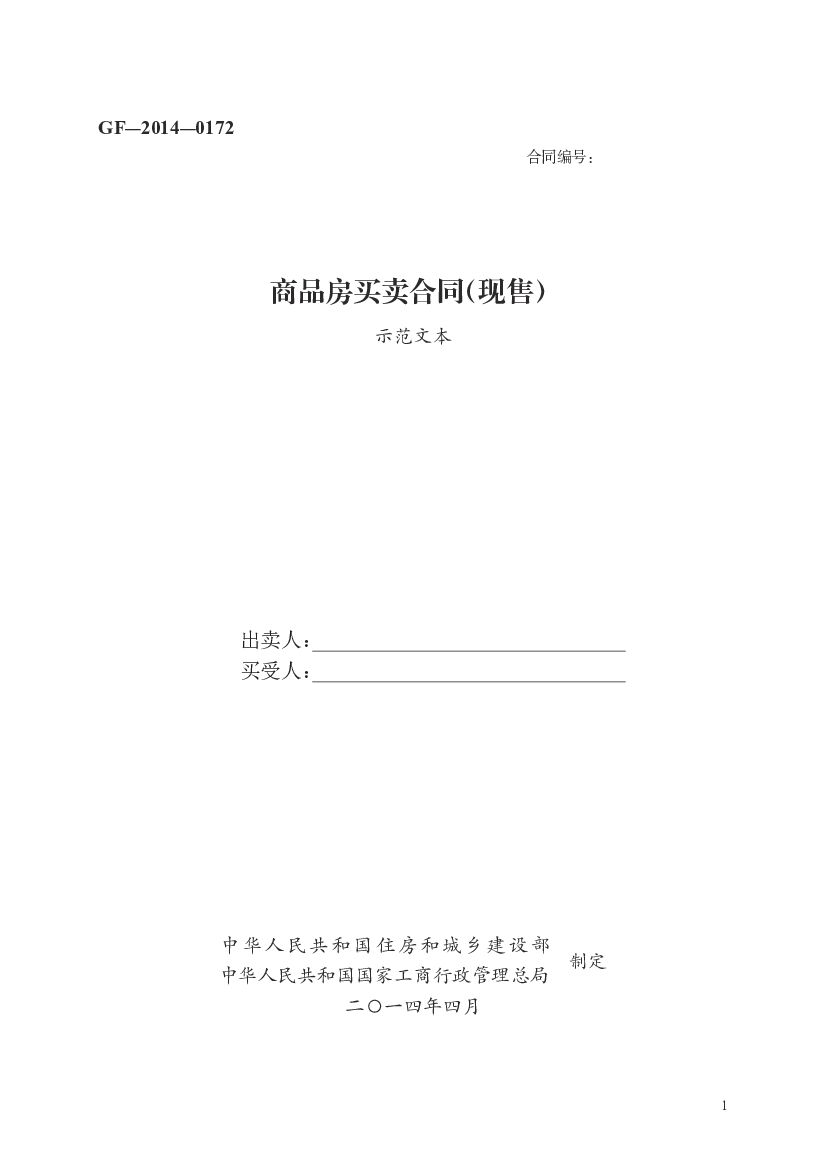 GF-2014-0172 住房和城乡建设部:商品房买卖合同(现售)(示范文本).pdf