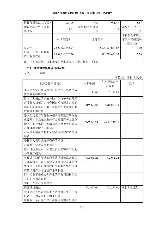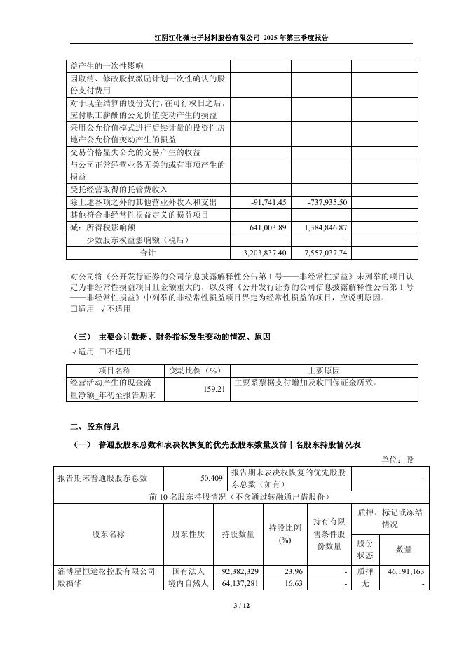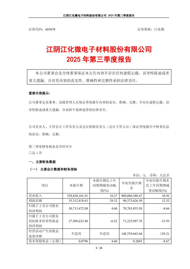 603078-江化微:江阴江化微电子材料股份有限公司2025年第三季度报告.pdf