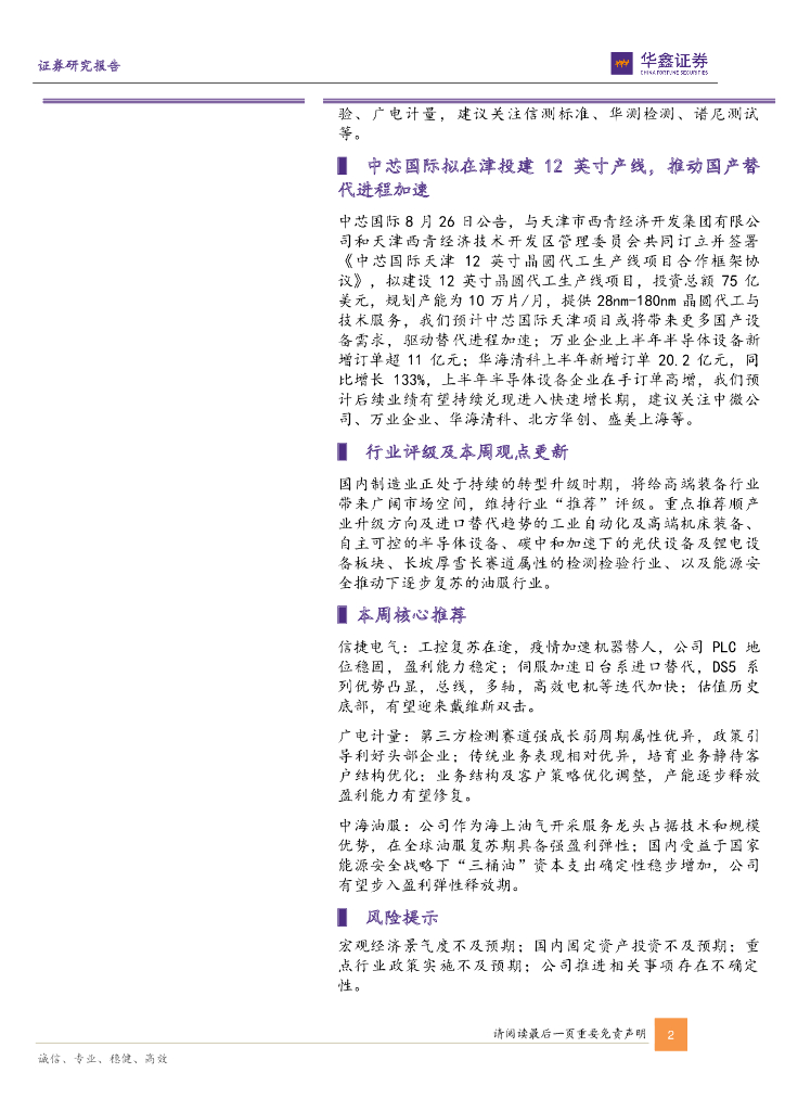 华鑫证券:机械行业第35周周报:关注检测及工控,看好油服景气复苏.pdf
