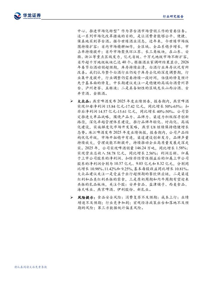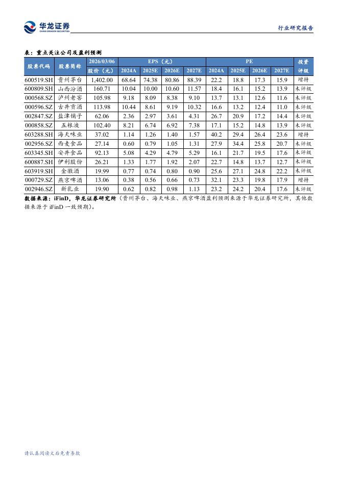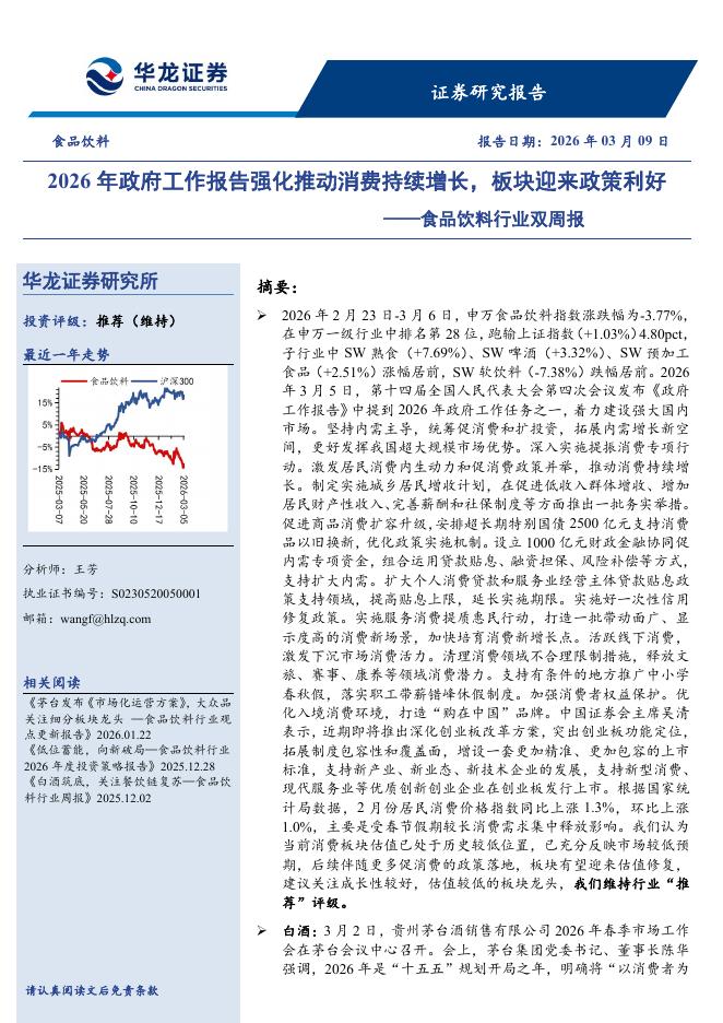 华龙证券:食品饮料行业双周报:2026年政府工作报告强化推动消费持续增长,板块迎来政策利好.pdf