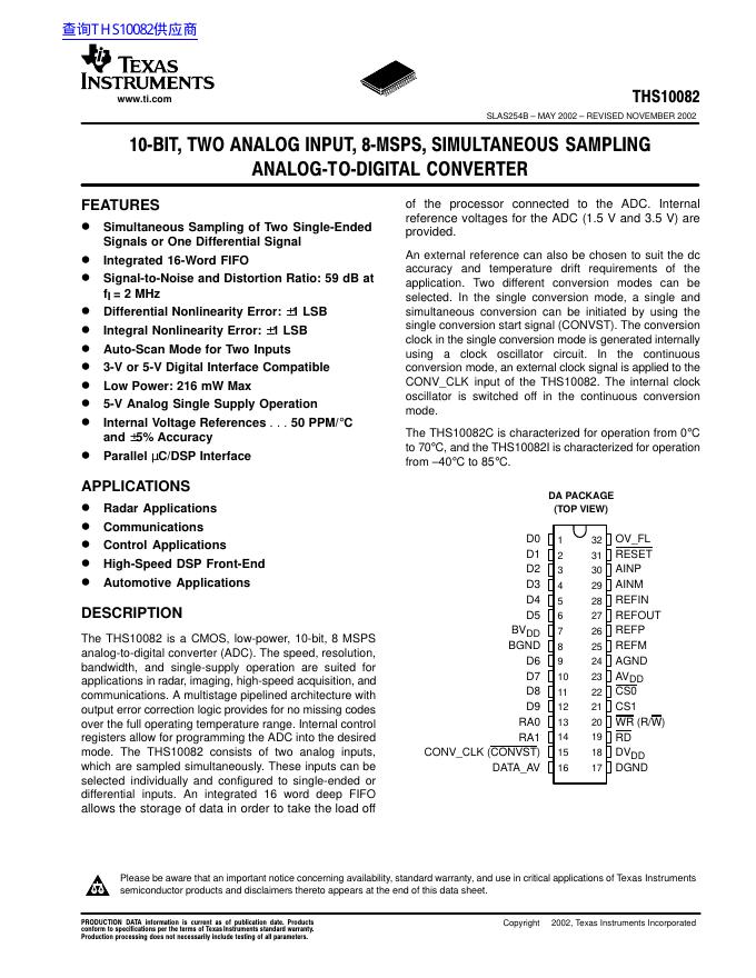 TEXAS INSTRUMENTS THS10082 数据手册.pdf