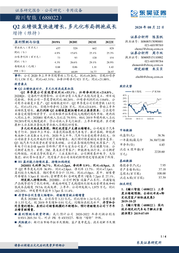 东吴证券:瀚川智能(688022)-Q2业绩恢复快速增长,多元化布局拥抱成长.pdf
