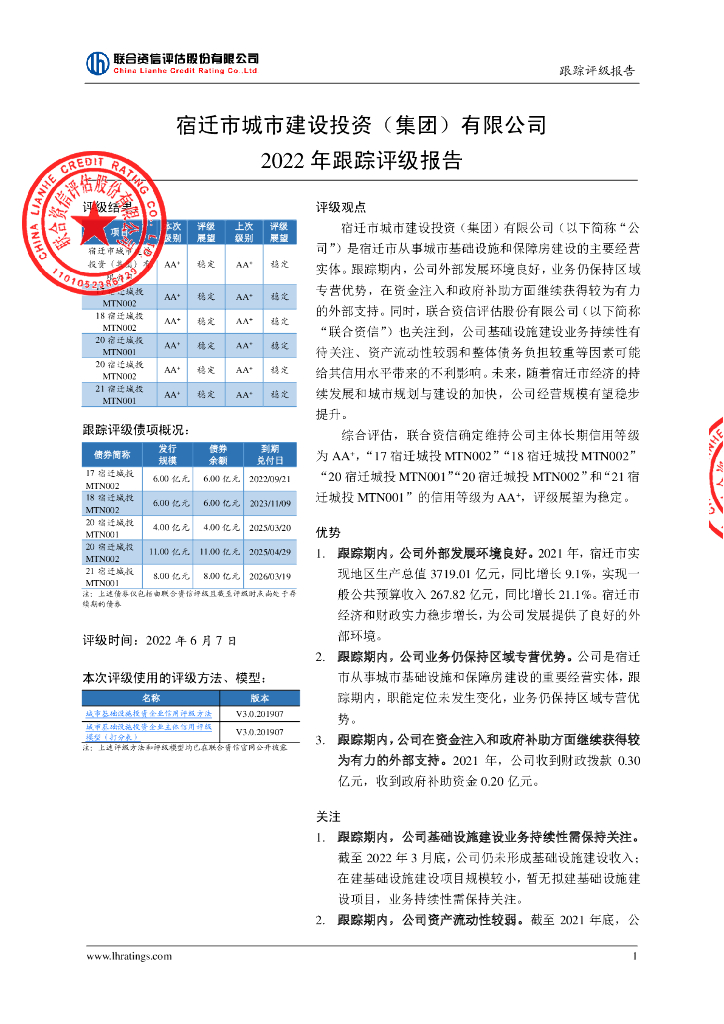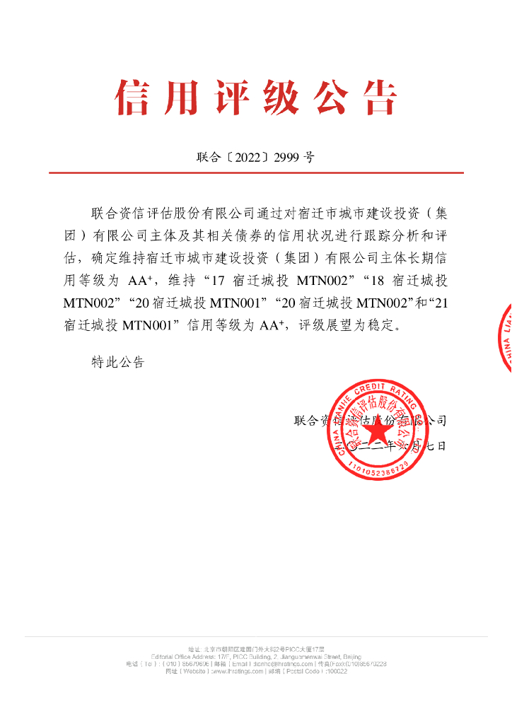 联合资信:宿迁市城市建设投资(集团)有限公司2022年跟踪评级报告.pdf