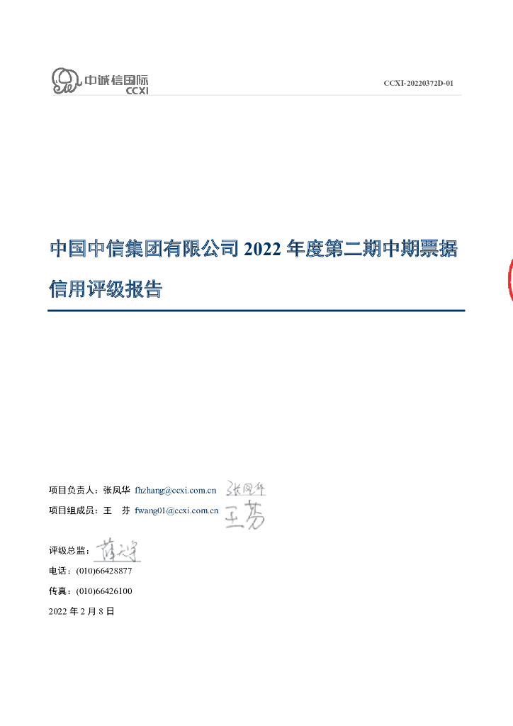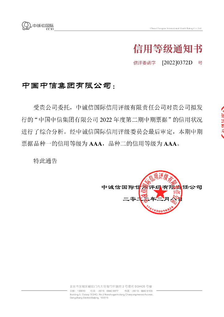 中诚信:中国中信集团有限公司2022年度第二期中期票据债项信用评级报告及跟踪评级安排.pdf