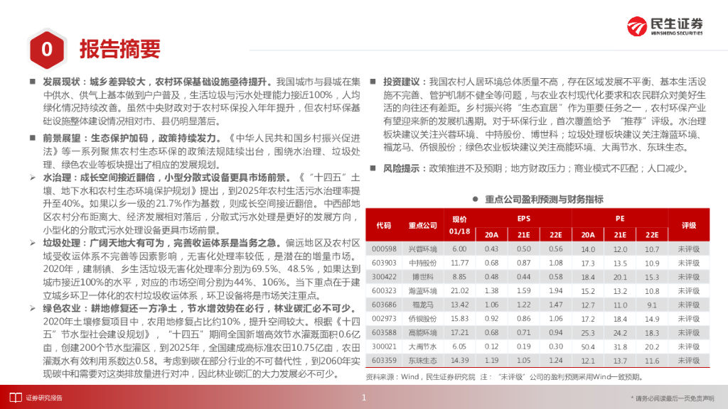 民生证券:乡村振兴专题系列报告(环保篇):美好乡土,生态宜居.pdf