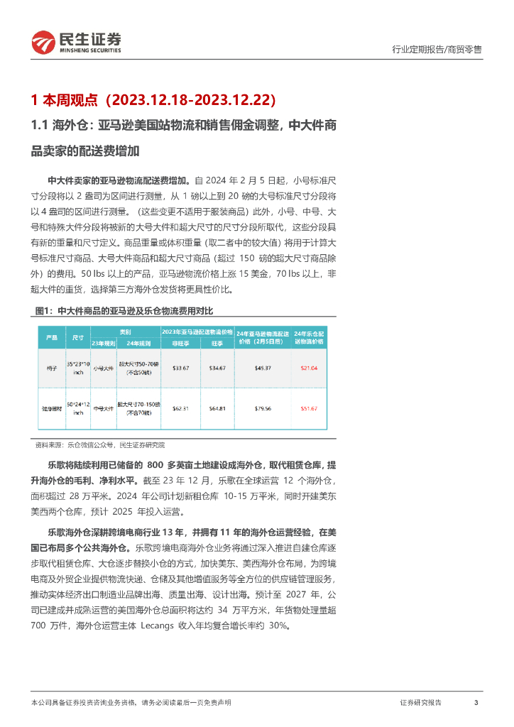 民生证券:零售周观点:亚马逊调整提升中大件商家的配送费,红海局势影响欧洲海运费上升.pdf