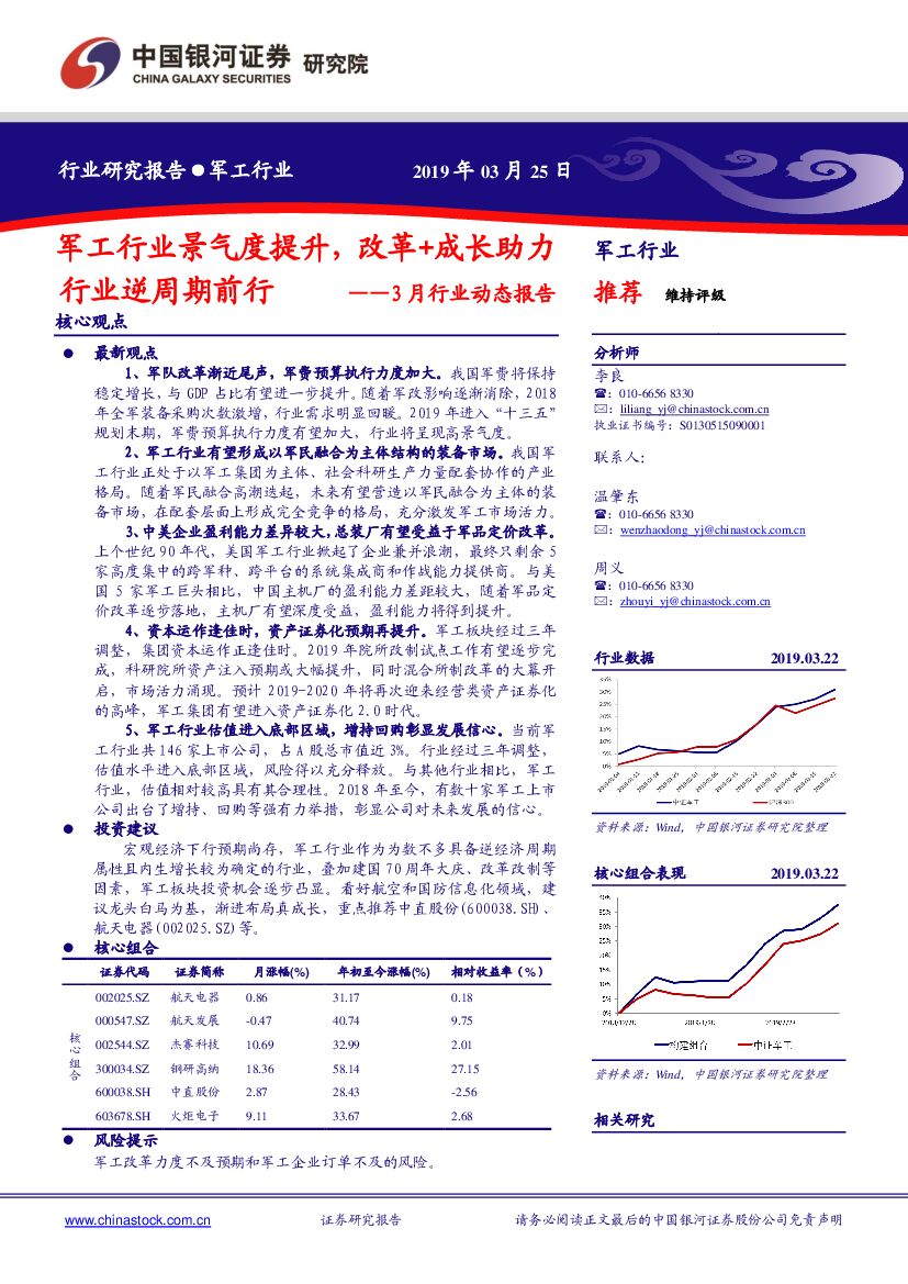 中国银河:军工行业:3月行业动态报告:军工行业景气度提升,改革+成长助力行业逆周期前行.pdf
