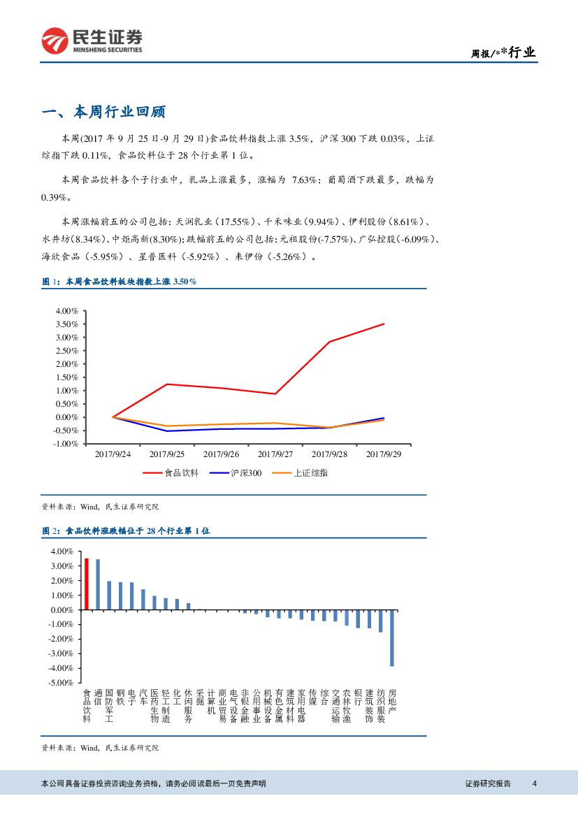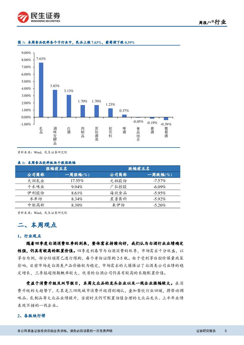 民生证券:食品饮料行业周报:白酒旺季到来,需求持续向好;消费升级,关注细分龙头.pdf