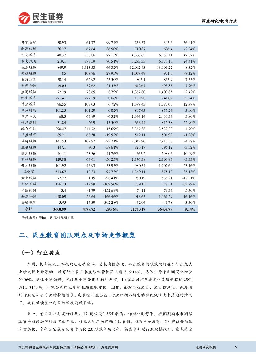 民生证券:教育行业周报:板块三季报整体向好,继续推荐职教、信息化、课外辅导.pdf