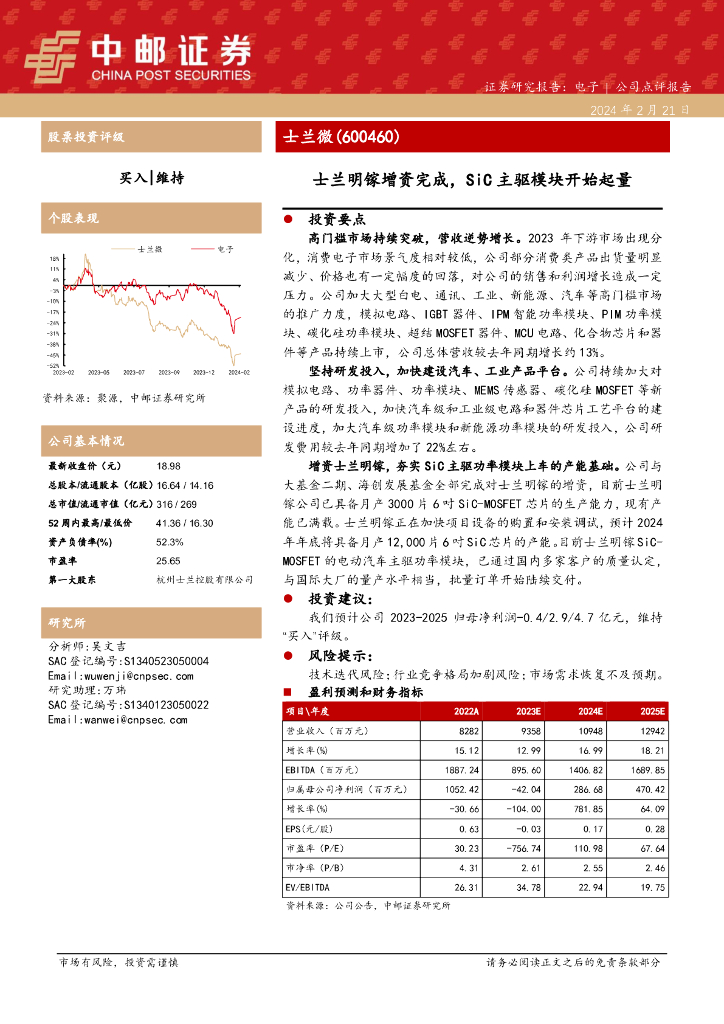 中邮证券:士兰微(600460)-士兰明镓增资完成,SiC主驱模块开始起量.pdf
