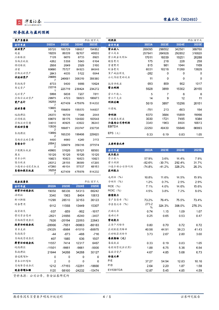 华安证券:荣盛石化(002493)-业绩环比改善,景气逐步修复.pdf