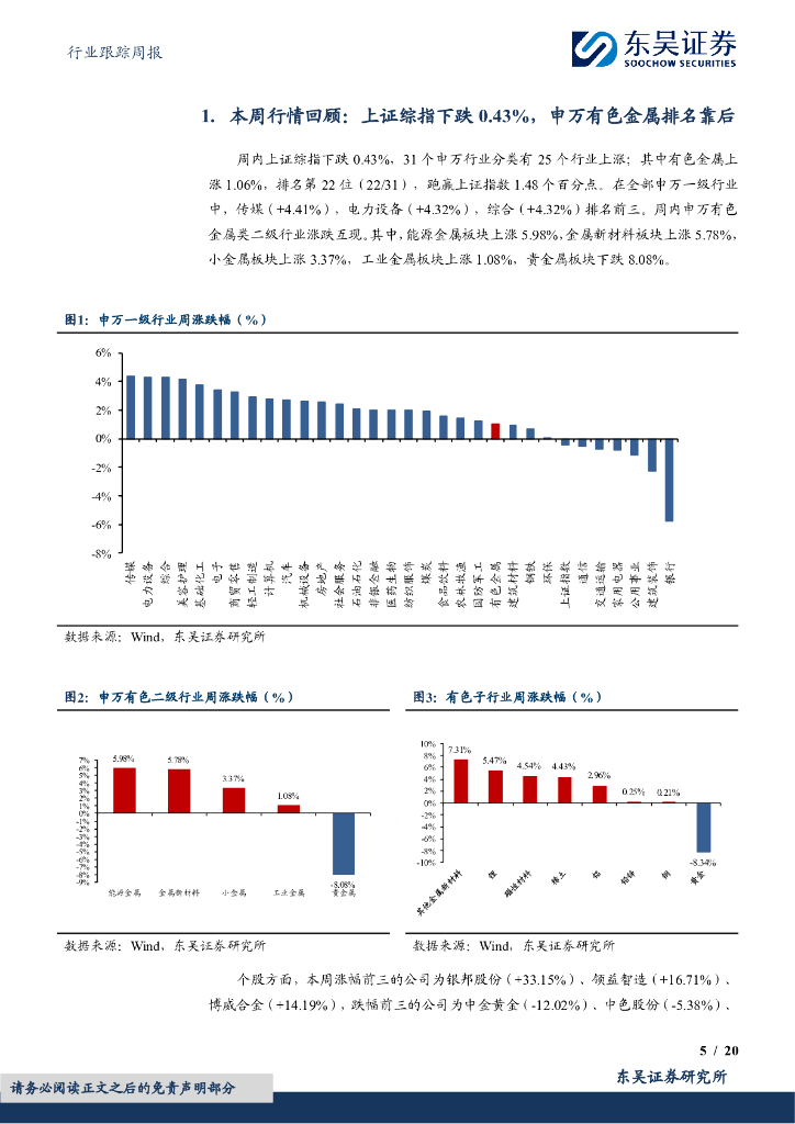 东吴证券:有色金属行业跟踪周报:美国经济数据好于预期,黄金价格高位震荡.pdf