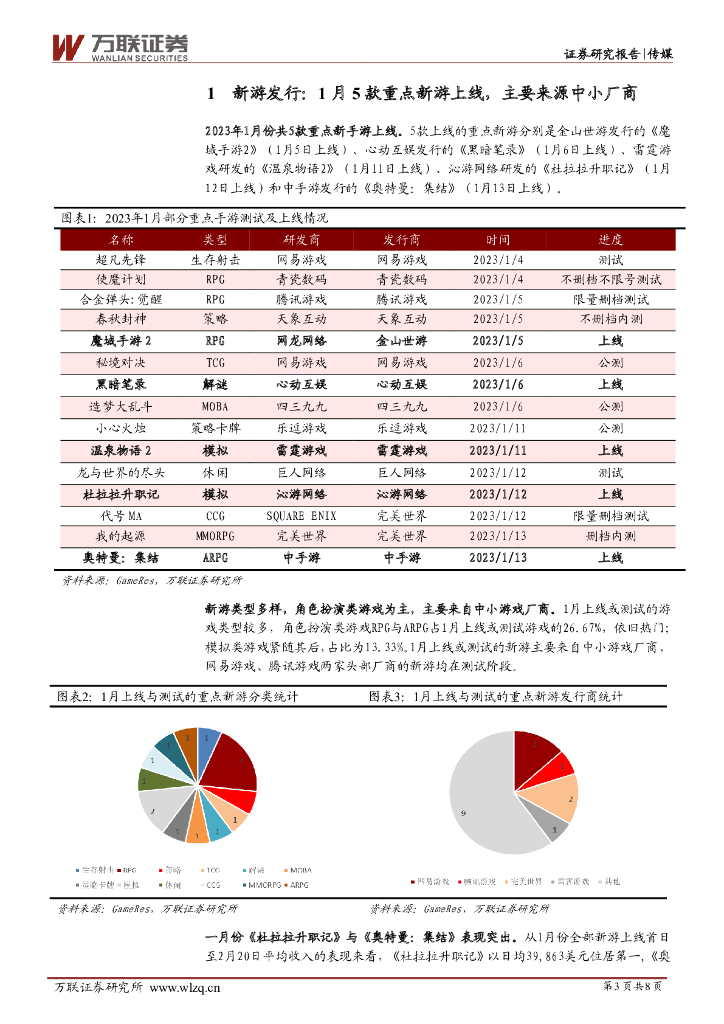 万联证券:传媒行业月报:1月新游IP改编游戏表现较优,游戏版号发放进入常态化.pdf