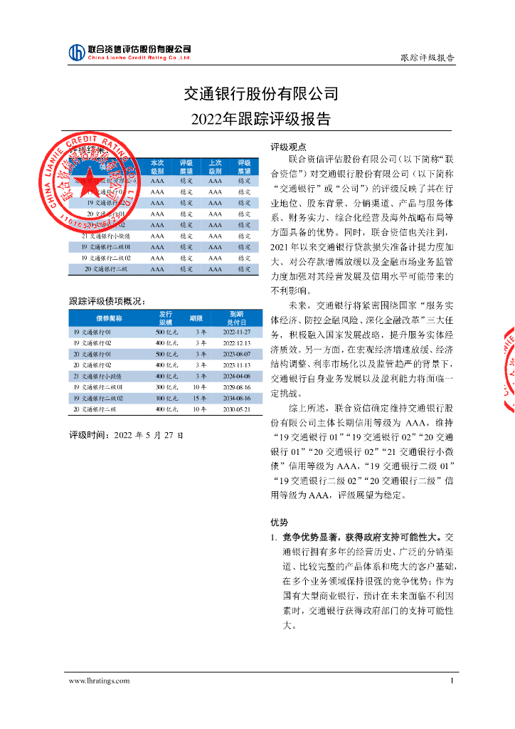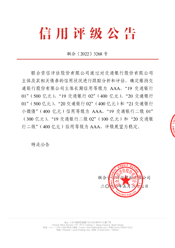 联合资信:交通银行股份有限公司2022年跟踪评级报告.pdf