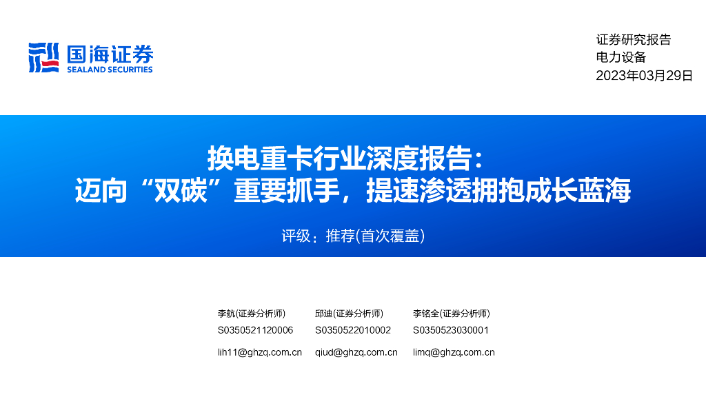 国海证券:换电重卡行业深度报告:迈向“双碳”重要抓手,提速渗透拥抱成长蓝海.pdf