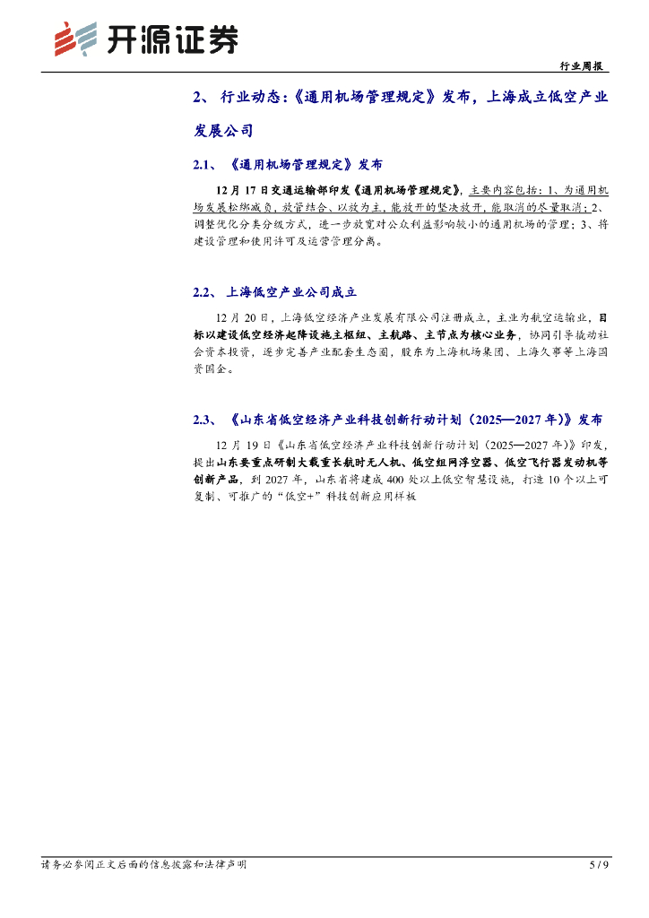 开源证券:电力设备行业周报:低空经济行业周报(第三十六期):中国移动主导首个低空经济共享设备标准立项,多地低空经济支持政