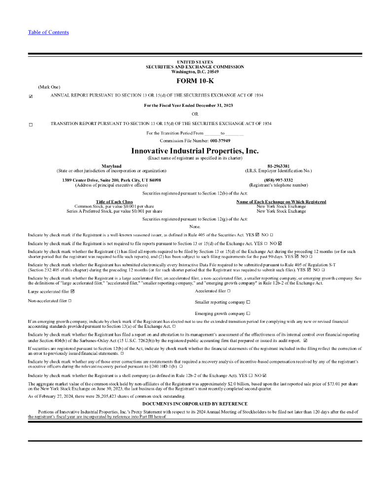 Innovative Industrial Properties Inc(IIPR)2023财年年度报告(英文版).pdf