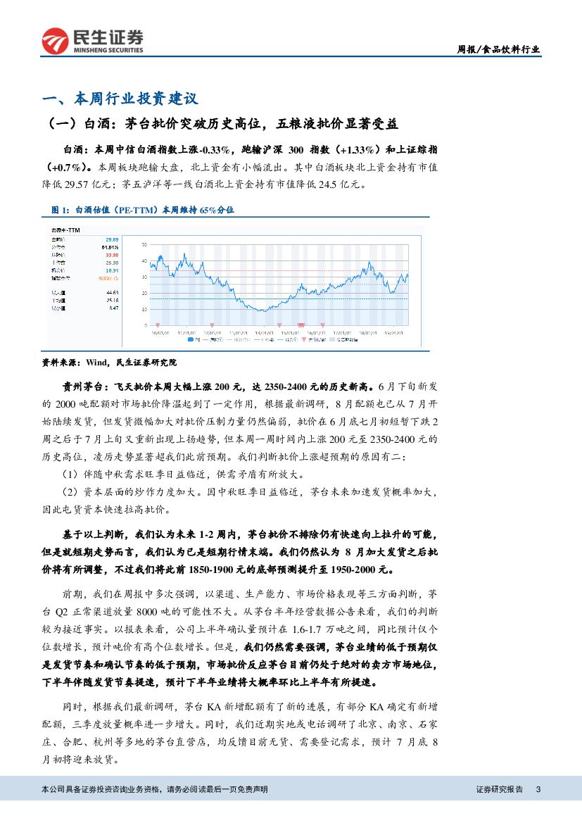 民生证券:食品饮料行业周报:飞天批价突破历史高位,伊利股份回购比例超3%.pdf
