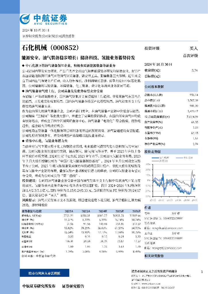 中航证券:石化机械(000852)-能源安全、油气装备稳步增长;储备科技、氢能业务蓄势待发.pdf