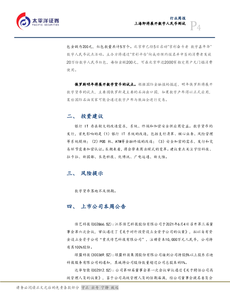 太平洋证券:信息技术行业周报:上海即将展开数字人民币测试.pdf