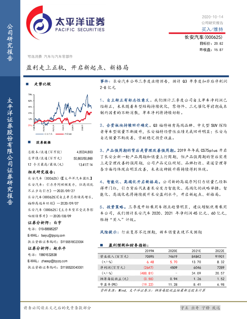 太平洋证券:长安汽车(000625)-盈利走上正轨,开启新起点、新格局.pdf