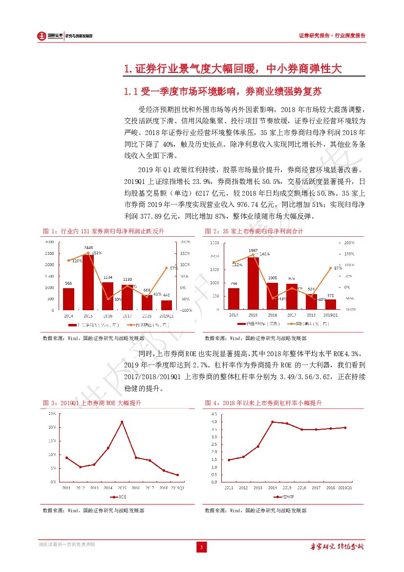 国融证券:非银金融行业:2019年上市券商一季报点评-资本市场改革红利持续,券商业务模式转型升级.pdf