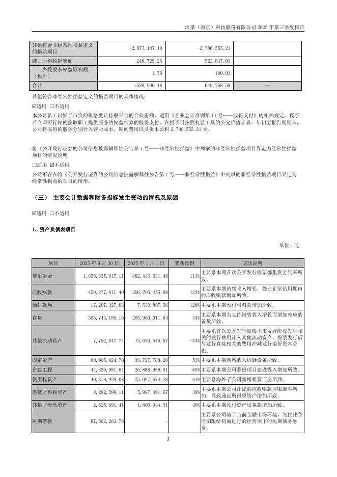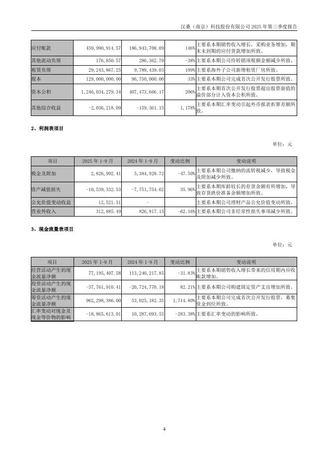 301491-汉桑科技:2025年三季度报告.pdf