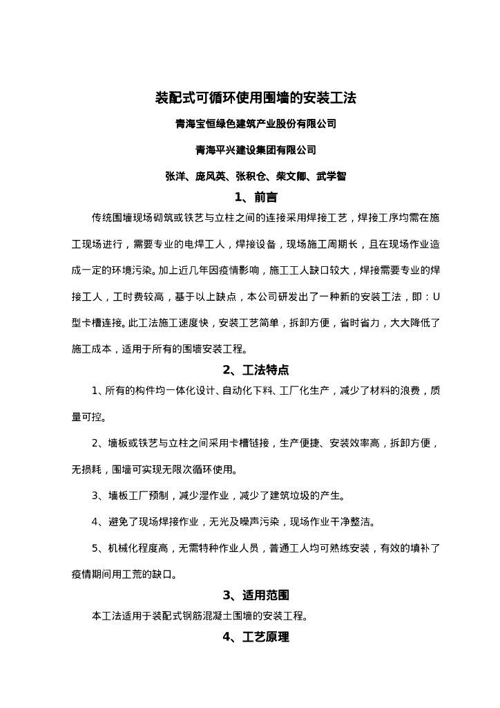 QHGF-2022019 装配式可循环使用围墙的安装工法.doc