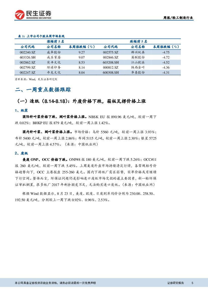 民生证券:轻工制造行业周报:上半年全国造纸业主营业务收入、利润总额分别同比增长15%、74%.pdf