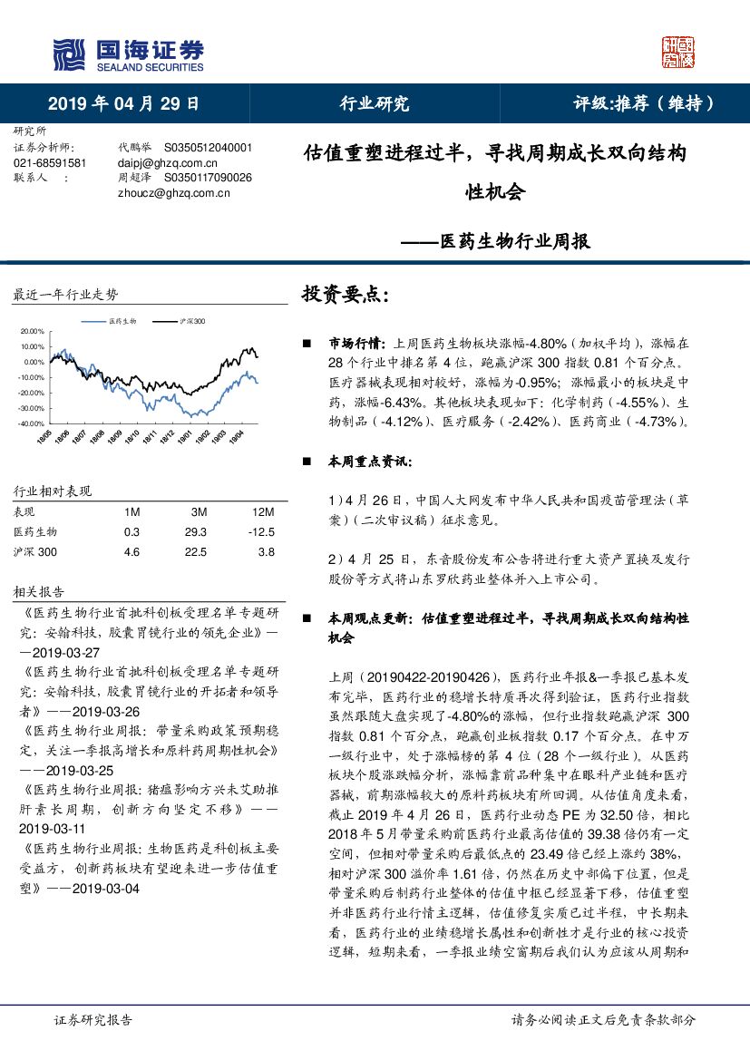 国海证券:医药生物行业周报:估值重塑进程过半,寻找周期成长双向结构性机会.pdf