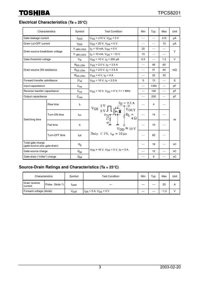 TOSHIBA Field Effect Transistor Silicon N Channel MOS Type (U-MOS II) TPCS8201 数据手册.pdf