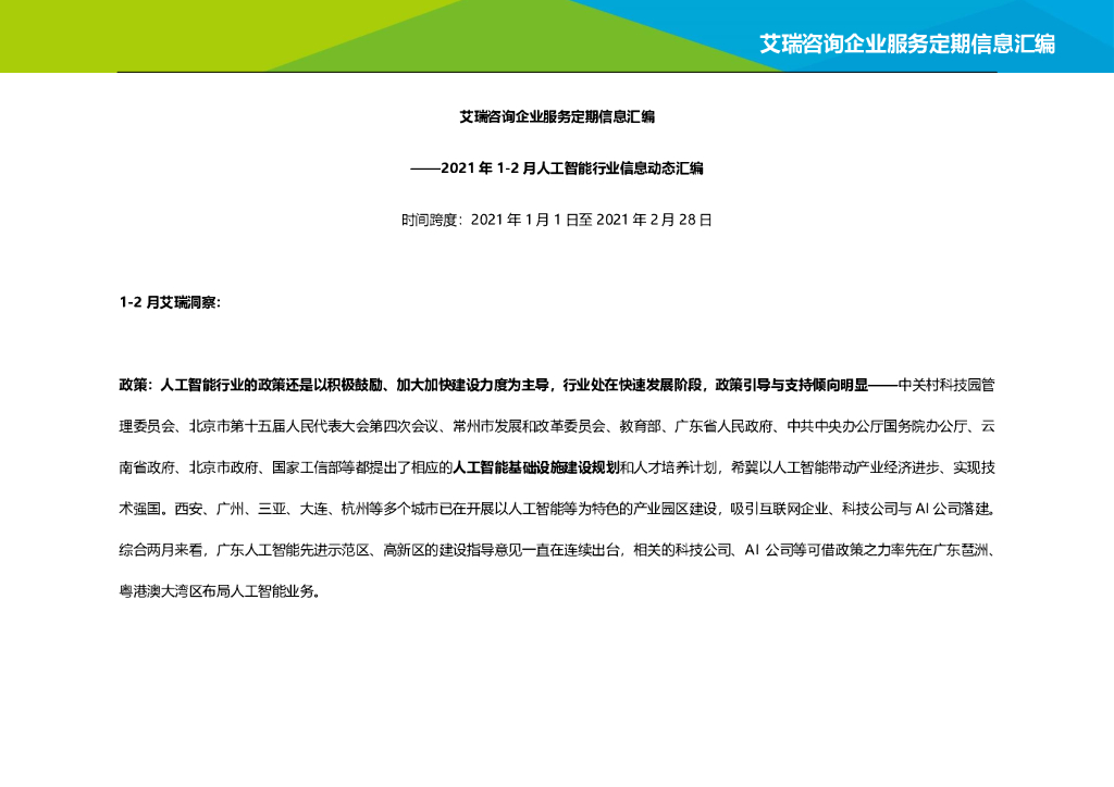 艾瑞咨询:2021年1-2月中国人工智能月报公开版.pdf