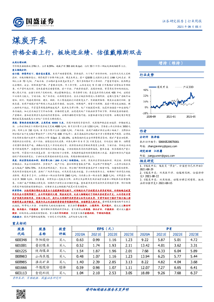 国盛证券:煤炭开采行业周报:价格全面上行,板块迎业绩、估值戴维斯双击.pdf